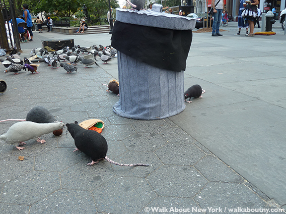 Ms. Trachtenburg has expanded her collection of felt creations to include other species of birds, red cardinals and crows. From rats of with wings to rats without wings, her latest creations are the common city rat. She has placed them at the entrance to the Union Square subway, for them appear if they scurrying into the system.