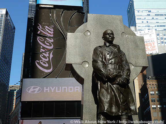 This northern end of Times Square has been given the additional name of Duffy Square. In 2008 a major renovation was completed. The unveiling of the improvements were attended by New York City Mayor Michael R. Bloomberg, Bishop Dennis Sullivan of the New York Archdiocese, plus representatives from the Coalition for Father Duffy, the Times Square Alliance and the Theatre Development Fund. Also on hand for this ribbon-cutting ceremony were current and former members of the New York State Army National Guard’s 1st Battalion, 69th Infantry Regiment, famous “Fighting 69th.”