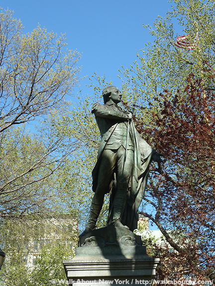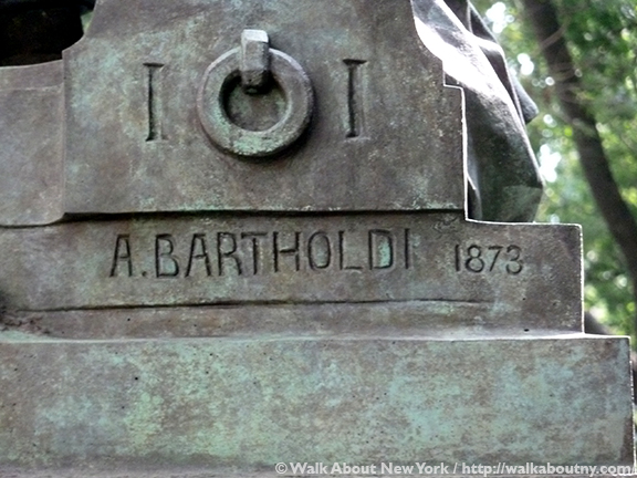One of the outstanding military officers of that war was Marie Joseph Paul Yves Roche Gilbert du Motier, Marquis de Lafayette. The French general is honored with a larger-than-life-sized sculpture in Union Square. Frédéric-Auguste Bartholdi (1834–1904) sculpted this likeness of the Marquis. It was a gift to New York City from the French government, as was another work designed by Monsieur Bartholdi, the Statue of Liberty. The bronze of the Marquis was the work of art that made the French sculptor’s reputation, earning him the honor of designing and fabricating Miss Liberty from copper.