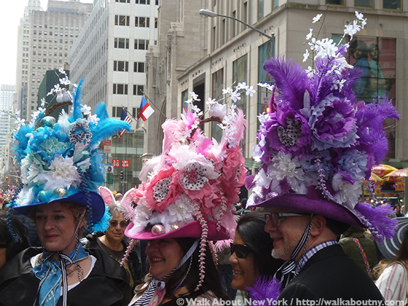 New York’s Easter Parade steps off at 10 o’clock of Easter Sunday. Fifth Avenue is closed to traffic between 49th and 57th Streets until late in the afternoon. No longer a display of new Easter finery, as it had been from the 1870s through the 1950s, the 21st-century version of the parade has become an opportunity to display your creativity and have some fun! Enjoy your promenade up Fifth Avenue with Walk About New York’s view of the Easter Parade.
