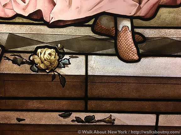 Located on the first floor of the Metropolitan Museum of Art is the Museum’s European Sculpture and Decorative Art collection. Among the works on display are the stained-glass panels from a bay window that were once in the home of the successful cotton broker, Isaac Bell (1815–1897). The Bell family lived at the Knickerbocker Apartments, 247 Fifth Avenue. Constructed in the early 1880s, this was one of the first luxury apartment buildings in New York City.