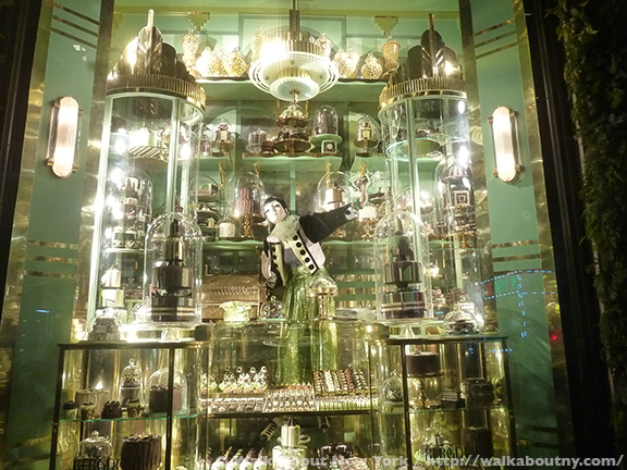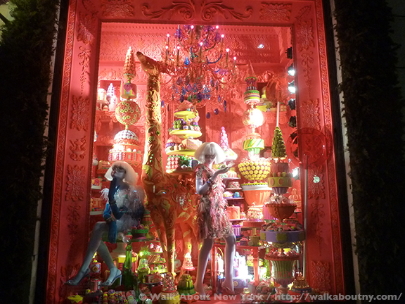 Our first set of windows are those of Bergdorf Goodman, the luxury department store facing Central Park. This year’s theme is everything sweet and yummy: cakes, pies, candy and cookies. The title is “Bergdorf Goodies.” These are our favorites!