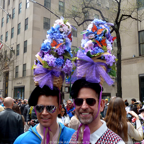 New York’s Easter Parade steps off at 10 o’clock of Easter Sunday. Fifth Avenue is closed to traffic between 49th and 57th Streets until late in the afternoon. No longer a display of new Easter finery, as it had been from the 1870s through the 1950s, the 21st-century version of the parade has become an opportunity to display your creativity and have some fun! Enjoy your promenade up Fifth Avenue with Walk About New York’s view of the Easter Parade.