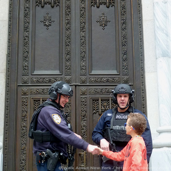 Some of New York’s Boys in Blue were making friends with future police officer perhaps. There is always a reassuring show of force at all of NYC’s parades.