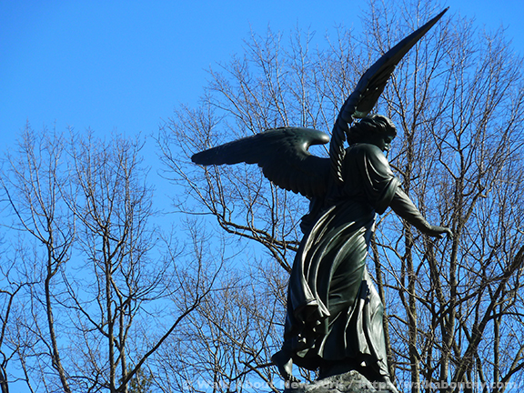 There is some speculation that she was awarded the commission for the fountain because her brother, Henry Stebbins was president of the park’s Board of Commissioners; he was also president of the New York Stock Exchange. However, the results—and the fabulous Angel—loudly proclaim that she was well-qualified for the task. In addition, the National Academy of Design in New York exhibited Miss Stebbins’ work; and in 1842 she was put forth as an associate member of the organization, the only position open to a non-professional. Because aspiring American sculptors of the mid-19th century could not find quality training in the U.S., they went to Rome. Of the American woman who followed this path, the expatriate and author Henry James (1843–1916) referred to them as “that strange sisterhood of American ‘lady sculptors’ who at one time settled upon the seven hills in a white marmorean flock.”