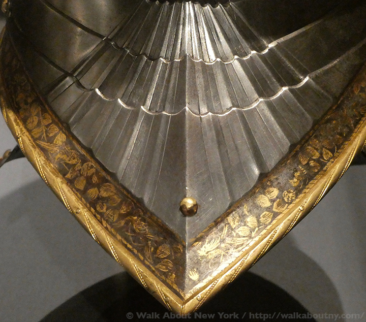 Made of steel, gold and copper this armor was worn by Gaspare Sanseverino d’Aragona (1455 – 1519), an Italian mercenary military commander, for the Italian Joust of Peace, which he won, at Max’s Court.