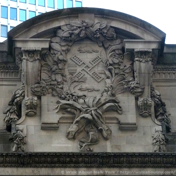 A shield at the Seal’s center displays two beaver and two flour barrels in the spaces between a windmill’s sails. This is the most basic part of the Seal, and most often it is used without the other elements. Prized for their pelts that were used for fur, and their skins that were made into felt for hats, beavers were the foundation for Nieuw Amsterdam’s economic success under the Dutch. How important was the beaver to the early economy? A ship known as the Arms of Amsterdam brought news of Peter Minuit’s purchase of the island in 1626 to the Kingdom of the Netherlands; but it carried a more valuable cargo: 7,246 beaver skins, 675 otter skins, 48 mink skins, 36 lynx skins, and 34 Muskrat skin. Beaver skins were so valuable in the province of Nieuw Netherland they were used as currency. John Jacob Astor (1763–1848), one of the wealthiest 19th-century New Yorker, made his fortune from the beaver trade; he then invested that fortune in New York real estate, where he made another fortune.