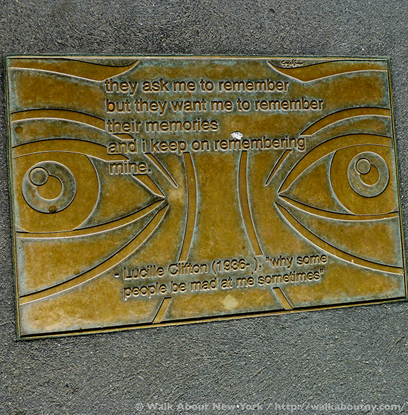 A quote from Song of Winnie by Gwendolyn Brooks is included along Library Way. At the time of the project’s creation Ms. Brooks had not died; therefore, only the year of her birth is listed. She died in in 2000.