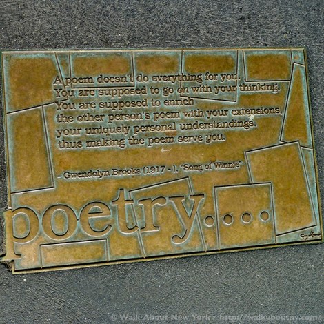 Our Subway Art Tour Three features a permanent art installation at 59th Street with a quote from a poem by Ms. Brooks, “Conduct your blooming in the noise and whip of the whirlwind.” Our Tours connect the art, history and life of the Big Apple. Take the Tour; Know More!