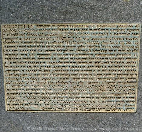 Brought to life by Gregg LeFevre, an urban sculptural artist whose studio is on Bleecker Street in Greenwich Village but lives in Harlem, the quotes are beautifully and often amusingly designed. Installed at regular intervals in the sidewalks along East 41st Street, Library Way was honored with an “Excellence in Design” award by the New York City Arts Commission in 1998.
